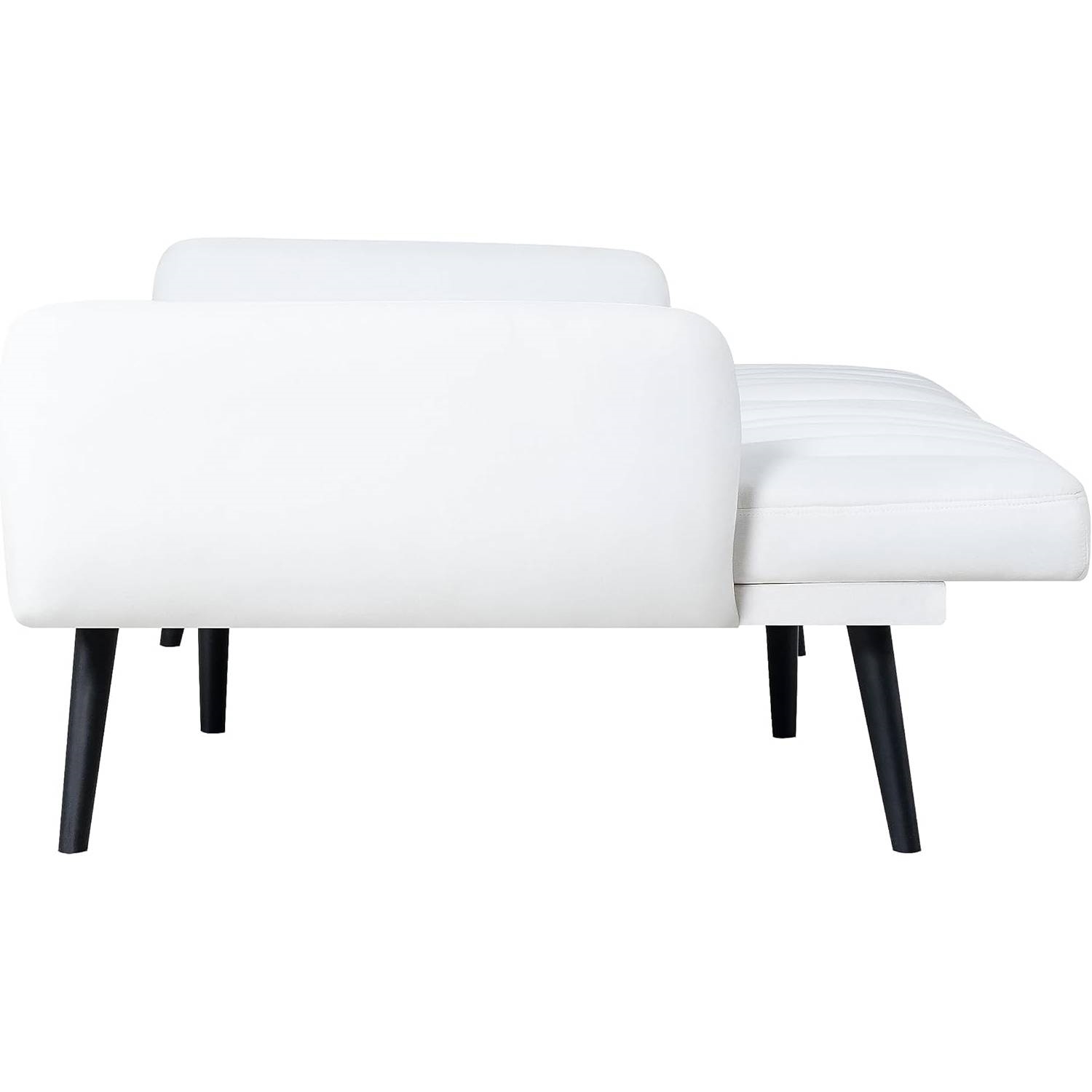 • Modern Mid-Century Futon Sleeper Sofa Bed in White Linen Fabric